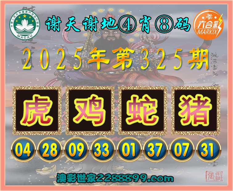 325期:〖谢天谢地〗 ⚽④肖⑧码⚽【虎鸡蛇猪】开:虎04准上榜高手