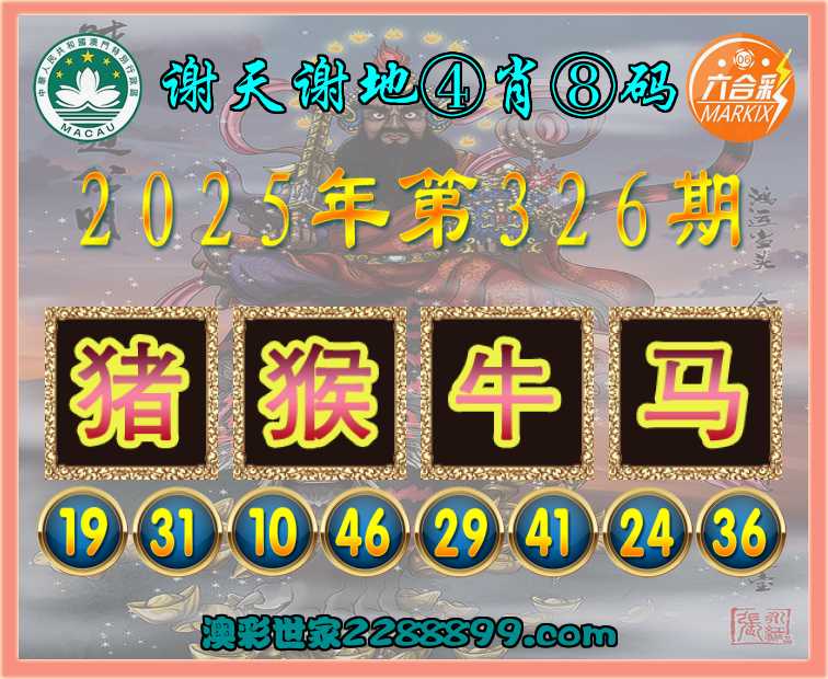 326期:〖谢天谢地〗 ⚽④肖⑧码⚽【猪猴牛马】开:猪19准上榜高手