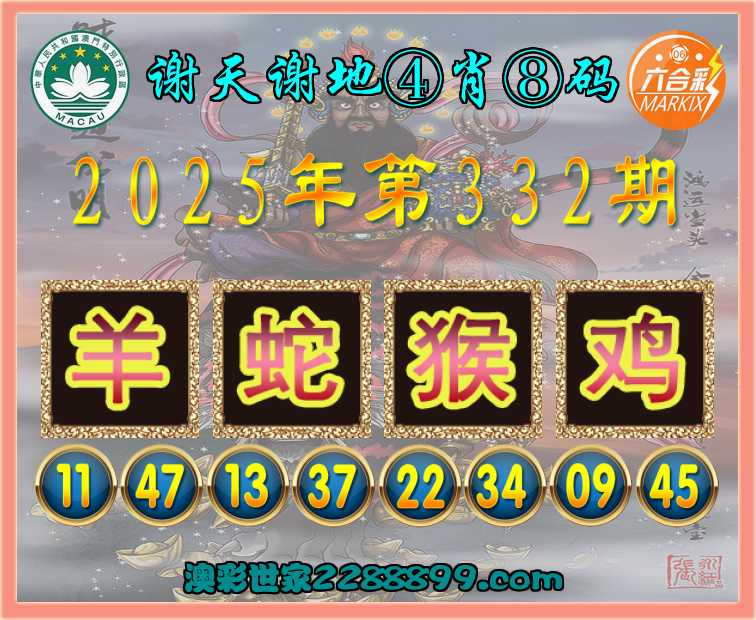 332期:〖谢天谢地〗 ⚽④肖⑧码⚽【羊蛇猴鸡】开:龙26错