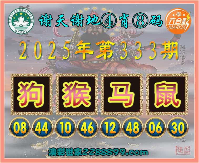 333期:〖谢天谢地〗 ⚽④肖⑧码⚽【狗猴马鼠】开:鼠06准上榜高手