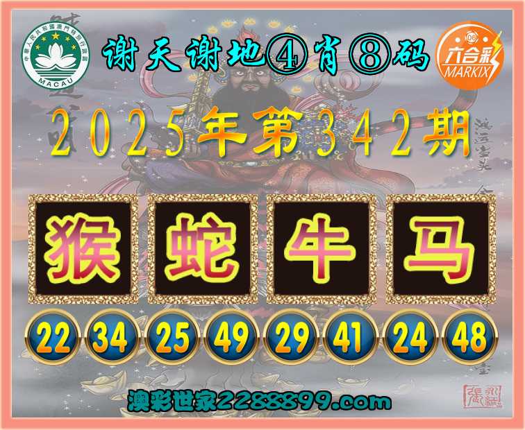 342期:〖谢天谢地〗 ⚽④肖⑧码⚽【猴蛇牛马】开:虎04错