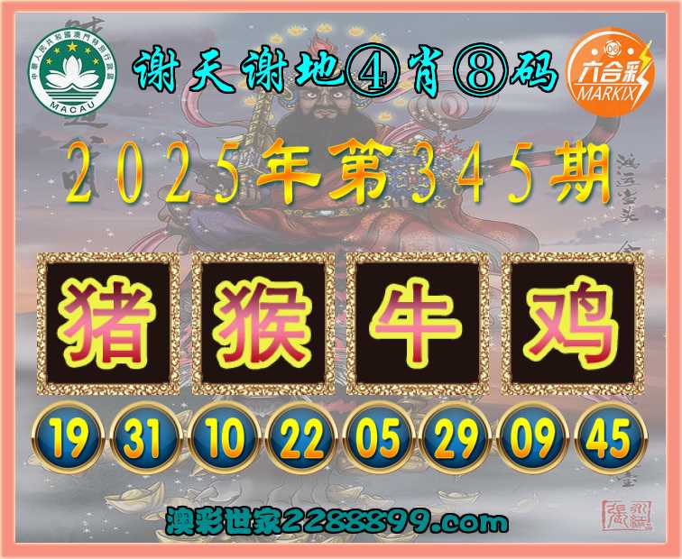 345期:〖谢天谢地〗 ⚽④肖⑧码⚽【猪猴牛鸡】开:马24错