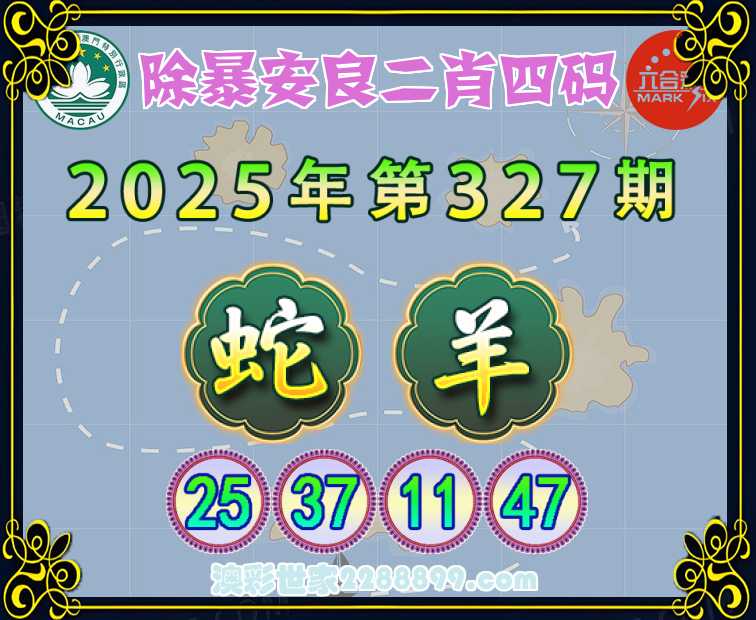 327期:【除暴安良】 💄二肖四码💄【蛇羊】【25.37.11.47】开:蛇37准